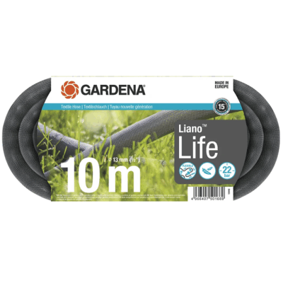 Το Υφασμάτινο Λάστιχο Liano™ Life 10 m της GARDENA είναι το ιδανικό εργαλείο για πότισμα μικρής και μεσαίας διάρκειας σε μικρούς κήπους ή μπαλκόνια. Το λάστιχο διαμέτρου 13 mm (1/2″) είναι άμεσα έτοιμο για χρήση χάρη στα προσυναρμολογημένα εξαρτήματα του Original GARDENA System: Σύνδεσμος λάστιχου ποτίσματος Liano™ και Στοπ νερού Liano™, αλλά και χάρη στο εύκαμπτο ύφασμα. Ο εύκαμπτος εσωτερικός σωλήνας από PVC παρέχει αξιόπιστη απόδοση, ενώ ο πρωτοποριακός εξωτερικός σωλήνας από ανθεκτικό ύφασμα αυξάνει τη διάρκεια ζωής. Το Liano™ Life χαρακτηρίζεται από την εξαιρετική ευκαμψία του, η οποία σας βοηθά κατά την άρδευση του κήπου ή την εκτέλεση εργασιών καθαρισμού, για παράδειγμα. Οι ελιγμοί πάνω στο έδαφος γίνονται εύκολα, καθώς είναι ελαστικό οπότε έχει λιγότερο πιθανό να μαγκώσει σε εμπόδια ή να τσακίσει. Είναι κατά 50% ελαφρύτερο από τα συμβατικά λάστιχα ποτίσματος από PVC, ώστε να μπορείτε να το κρατάτε άνετα στα χέρια σας ακόμα και για μεγάλες χρονικές περιόδους. Επιπλέον, η ευχάριστη αίσθηση αφής εξασφαλίζει ο χειρισμός του γίνεται άνετα. Χάρη στη μεγάλη ευκαμψία του, το λάστιχο προσαρμόζεται εύκολα στον υπάρχοντα αποθηκευτικό χώρο που έχετε, ώστε να μπορείτε να το φυλάσσετε εύκολα και συμμαζεμένα. Η πίεση θραύσης του Liano™ Life είναι 22 bar. Καθώς το λάστιχο Liano είναι ανθεκτικό στην υπεριώδη ακτινοβολία και τον παγετό, μπορείτε να το φυλάσσετε σε εξωτερικούς χώρους σε όλη τη διάρκεια του έτους. Το Liano™ Life δεν περιέχει επιβλαβείς ουσίες, δηλαδή φθαλικές ενώσεις (<0,1%), κάδμιο, μόλυβδο και βάριο (<0,1%). Το ποιοτικό υφασμάτινο λάστιχο Liano™ Life κατασκευάζεται στην Ευρώπη και υποστηρίζεται από εγγύηση κατασκευαστή 15 ετών από την GARDENA, αφού γίνει καταχώρηση του προϊόντος στο gardena.com/registration εντός 3 μηνών από την αγορά. Κατασκευασμένο για ακραίες συνθήκες. Σχεδιασμένο για καθημερινή χρήση. Υφασμάτινα Λάστιχα Liano™.